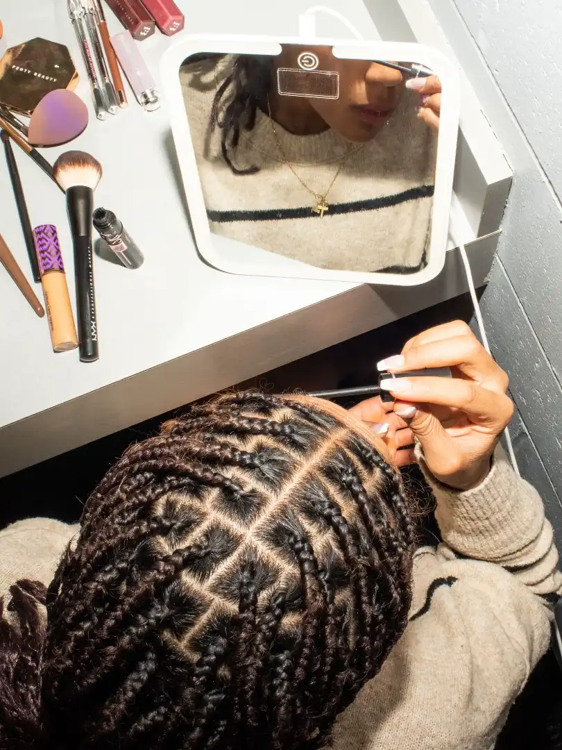 Soon, the dressing tables took on the appearance of an oversized bathroom vanity, covered in tubes, sprays, bottles, compacts, and palettes. As hands flew back and forth between beauty blenders, brow combs, mascara wands, and more brushes than I could count, Roberson, de Jesus dos Santos, Ohashi, and Lee talked about what performing in the show—and living together on the road—is really like. Read on as the gymnasts share their “deep, deep question” sessions, new nicknames for each other (and what “Boss Baby” really means), how that sleeping situation actually works, and why the tour represents a “full-circle moment.”