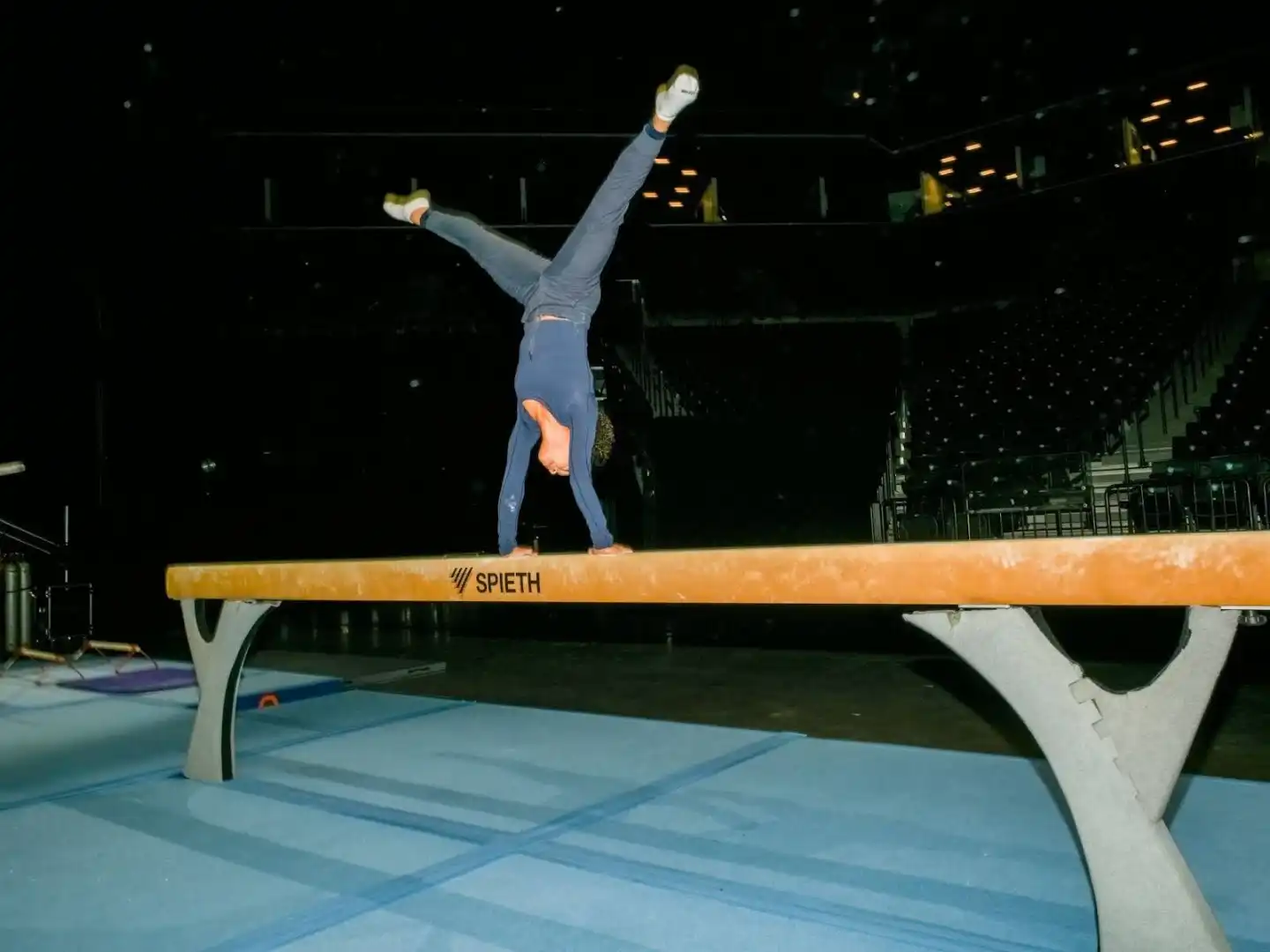 I watched all the athletes in their full glory during the show, but I was lucky enough to get a sneak peek earlier in the day: The GOAT folks invited SELF behind the scenes, so I headed backstage around 4:30 p.m. to chat with some of them and watch their warm-ups. Sprawled on the blue competition mats, the group talked, bantered, and joked like “a bunch of cousins,” as Peng-Peng Lee, 31, a Canadian gymnast who was set to compete at the 2012 London Games before an injury sidelined her, described it to me.